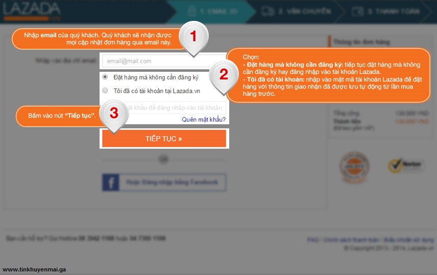 Nhập địa chỉ email để tiếp tục. Bạn hãy điền email thật chuẩn để nhận được những thông tin về sản phẩm bạn đặt hàng.